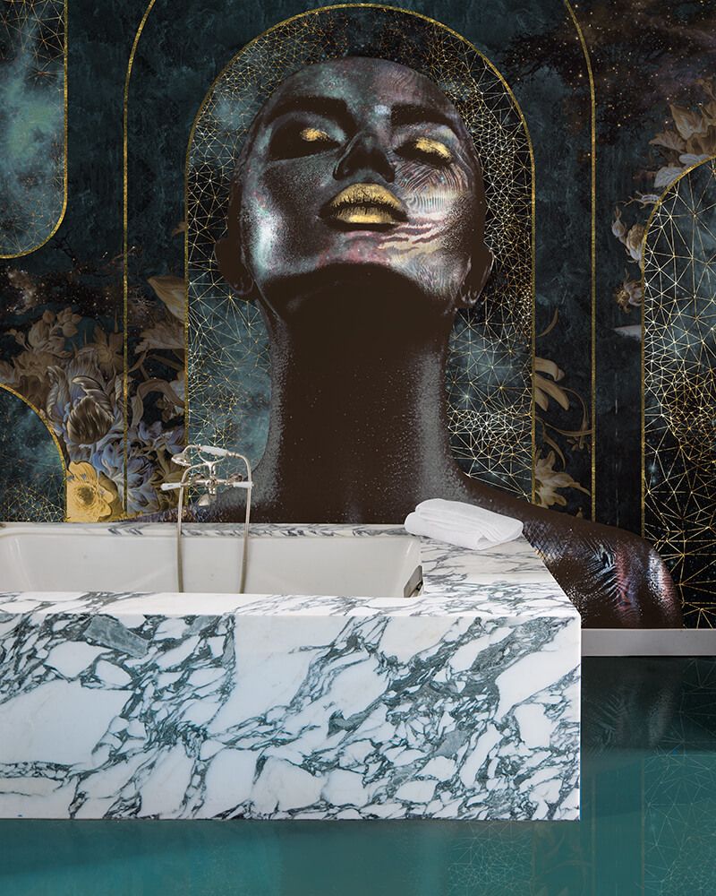 It is very important to learn that, sometimes, less is more. If we just include a lot of golden areas around the whole space, maybe we are creating a really confused stay, so people will not probably appreciate the beauty of the wallpaper and the set of all the elements.