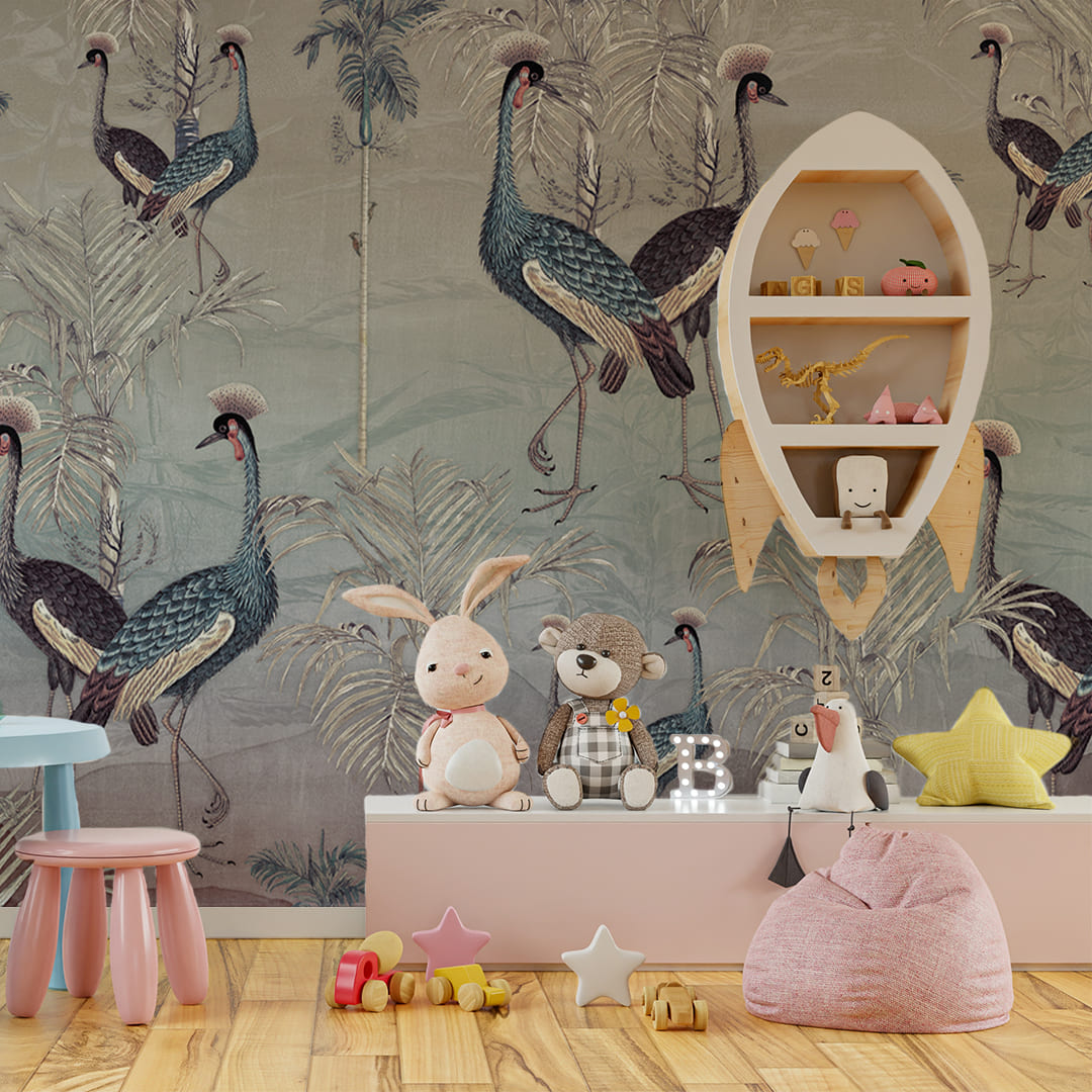 This type of murals with a lot of elements helps to decorate the room without filling all the space with more objects than we need. For these ages this is a very important thing because children use to have a lot of toys and is very important this space optimization.